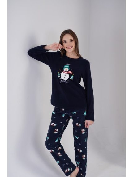 Zen Χριστουγεννιάτικη Fleece Γυναικεία Πιτζάμα Μπλέ-3050010072
