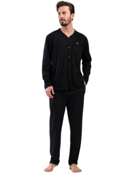 Ανδρική Πιτζάμα Βαμβακερή-Μαύρη