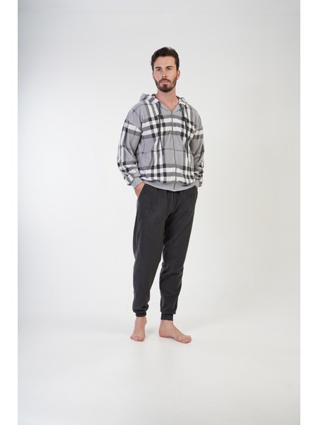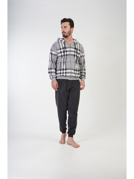 ✔Ανδρική πιτζάμα fleece με ζακέτα και κουκούλα