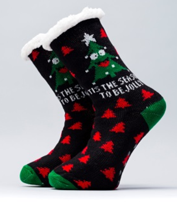 Χριστουγεννιάτικη, αντιολισθητική, βαμβακερή κάλτσα για το σπίτι με σχέδιο χριστουγεννιάτικο δέντρο.