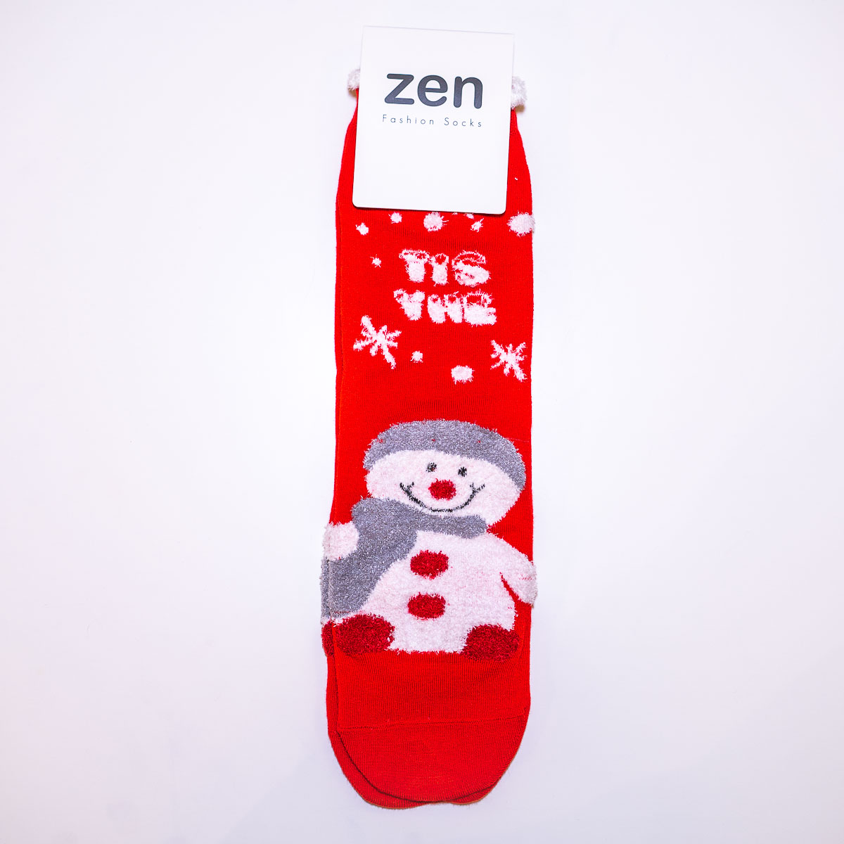 Χριστουγεννιάτικη βαμβακερή κάλτσα σε κόκκινο χρώμα, με σχέδιο Χιονάνθρωπο.