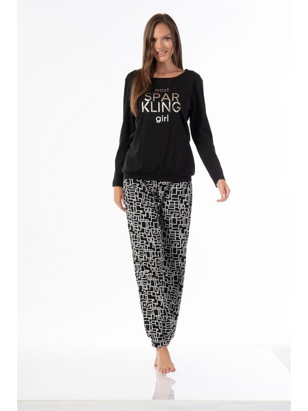 Γυναικεία Πιτζάμα Βαμβακερή-Μαύρη