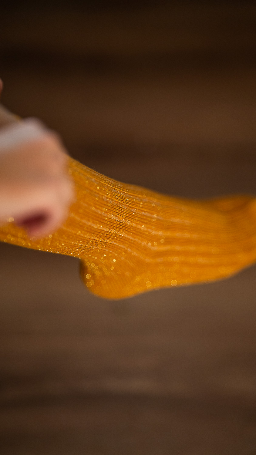 Βαμβακερή κάλτσα με νήμα λούρεξ σε 6 αποχρώσεις.