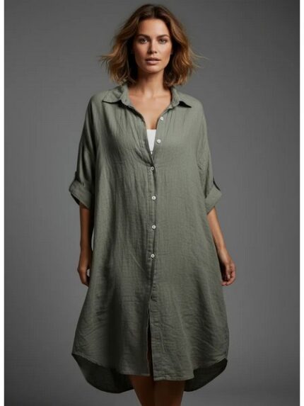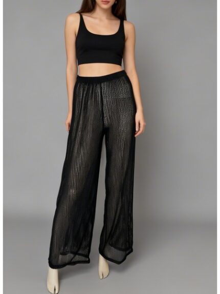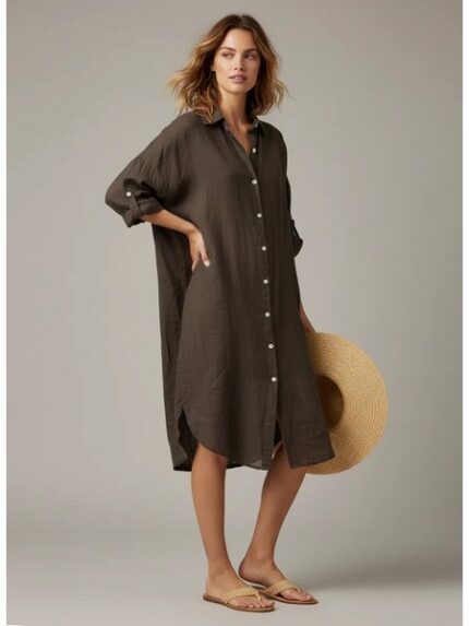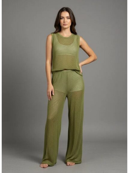 Πλεκτό φόρεμα παραλίας με κεντήματα και κορδόνι στη μέση.